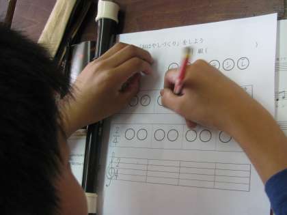 早速,自由に階名を書き込みお囃子つくりに取組ました。