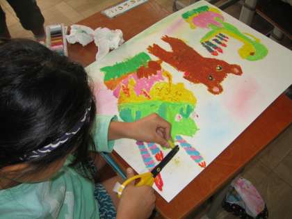 図工で取り組んでいる「お話の絵」は,だんだん完成に近づいています。子ども達は,図工が大好き!今日も張り切って取り組んでいました。
