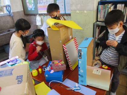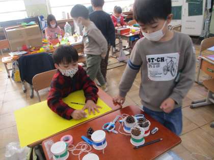 秋の宝物や,集めていただいた材料を使いながら