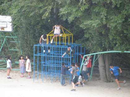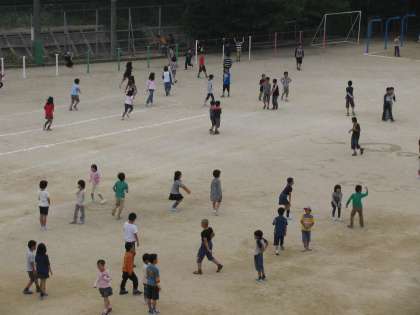 みんなサッと遊びを止めて,校舎の方へと走っていきます。