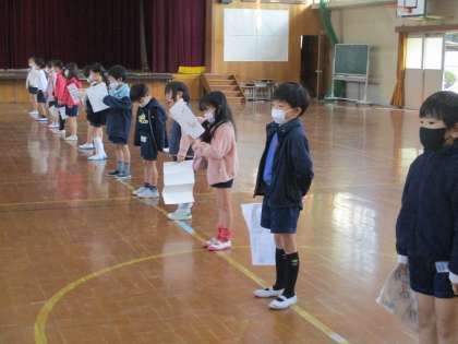 今日は,はじめて体育館で,言葉の練習をしました。