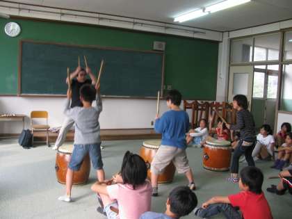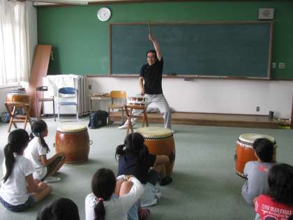 5.6時間目に太鼓の先生をゲストティチャーに招いて
