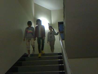 万が一のとき,自分たちの部屋からどのような経路で避難し,どこへ避難するのか,人数報告の仕方まで訓練しました。
