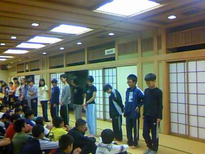 広い部屋に全員が集合して,ゲームをしたりして楽しい時間をすごしました。