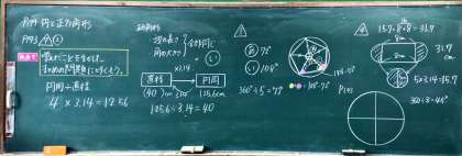 算数「円と正多角形」では,円とコンパスや分度器を使って作図をしました。