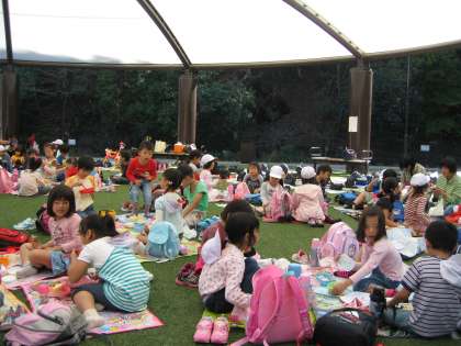 いっぱい遊んだ子ども達は,おなかがぺこぺこです。グループで仲良く「いただきます。」をしてお弁当をいただきました。「おいしい!」あっと言う間に食べ終わりました。朝早くから,心のこもったお弁当を作ってくださってありがとうございました。