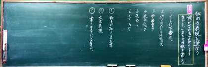 「1年生に伝わる言葉はなにかなあ」と考えたり,調べたりしながら,慎重に書き上げていました。「「単位」って言葉,伝わるかなあ。」「「新しい」は分かるよね。」と近くの友達に相談しながら,丁寧に書き上げました。1年生に送るのが楽しみです。
