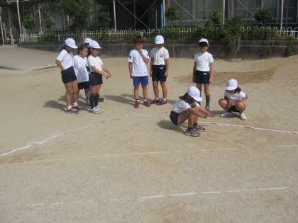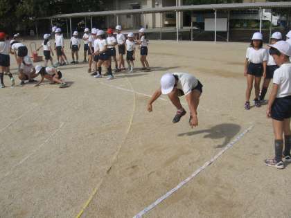 はじめての学習だったので、腕を大きく振ってできるだけ遠くに跳ぶ練習をしました。