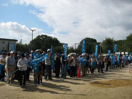 各ご家庭にて初動措置訓練をされた後,ご町内ごとに,避難誘導訓練として,本校にお集まりくださいました。