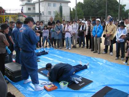 消防署員や消防分団の方々のご指導で,各種訓練を行っている様子です。