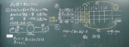 あやのさんとお姉さんが出会うのは,何分後なのか,考えました。