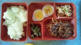 磯観察で,みんなおなかがぺこぺこ。おいしいお昼ご飯をいただきました。