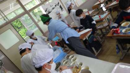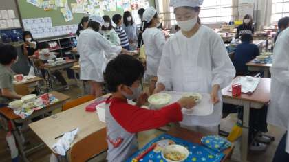 とても手際のよい5年生。給食当番もてきぱきと役割りを果たしてくれています。