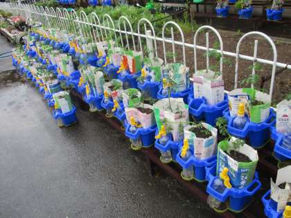 ミニトマトのなえを うえきばちに うえました。