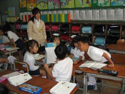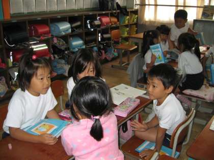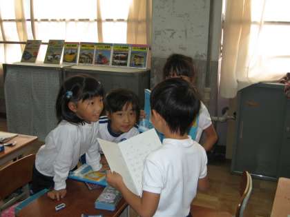 国語の授業で,「ことばであそぼう」をしました。たとえば,「かばんのなかには,かばがいる。」「パンダのなかには,パンがある。」などです。教科書の問題を済ませた後,自分で問題作りをして,グループで発表しあいました。ことばっておもしろいですね!