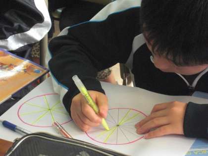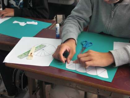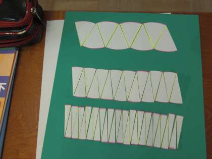 円の面積を求める公式を導き出すために,実際に,円を切って,長方形や平行四辺形など求められる形に変形していきました。