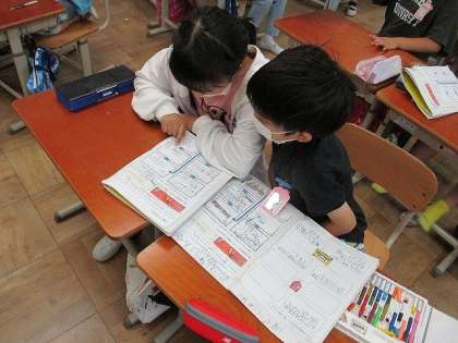 友達と話し合いながら考えました。