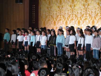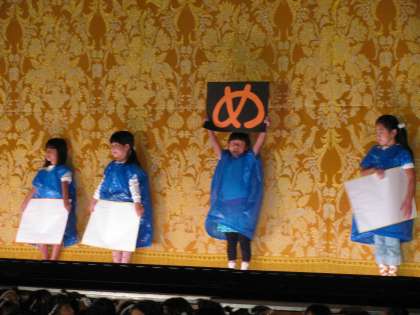 1年生が始まりに際して,「は」「じ」「め」「の」「こ」「と」「ば」という文字を使って,これからの発表を盛り上げる工夫を見せてくれました。とてもかわいい演出でした。