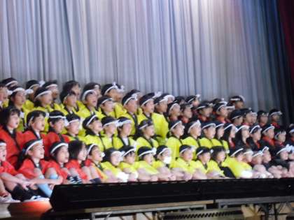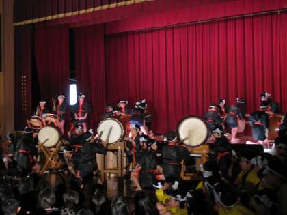 桃山発表会。4年生は群読と和太鼓に挑戦しました。