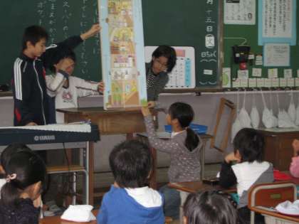 今週は読書週間です。兄弟学級の6年生が,毎日1年生の教室に来て読み聞かせをしてくれています。本大好きな1年生なので,この時間はお待ちかねです。6年生の読む話に聞き耳をたてている子ども達です。