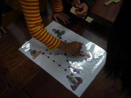 ユンノリは日本のすごろくのような遊びで、子どもたちにとってもとてもわかりやすく簡単に遊べる遊びです。