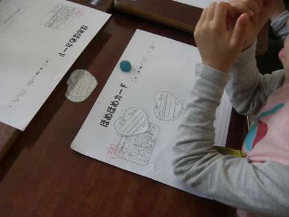 同じグループの友達のことをじっくりと考え,それぞれのよいところ,すばらしいところをほめほめカードに書いて交換し合います。