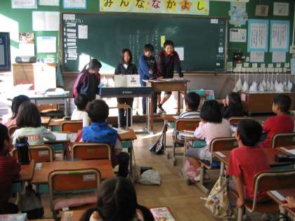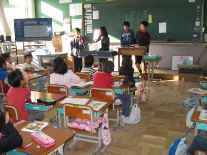 読書週間の今日も6年生が読み聞かせに来てくれました。今日の本は,ことばあそびの本でした。とてもおもしろくって,笑いながらきいていた子ども達でした。明日はどんなお話かな。楽しみです。