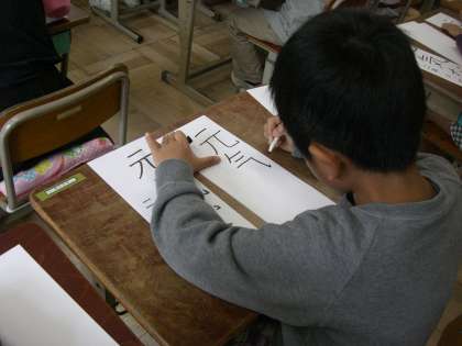 書写の時間に,フェルトペンを使って「元気な子」を書きました。