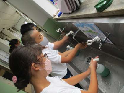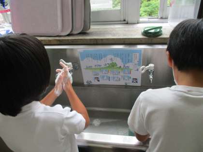 いつもより丁寧に手洗い練習に励んでいました。