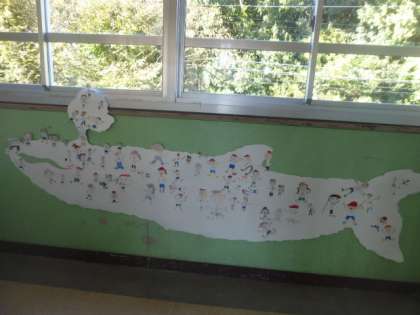国語科では「くじらぐも」の学習をしています。子ども達はこのお話が大好きです。「1ねん2くみのこどもたちがうらやましい。」「ぼくもくじらぐもにのってみたい!」という思いをかなえるために、絵にかいた自分をくじらぐもにのせました。自分をどこに乗せるか、楽しく想像しながら考えていました。