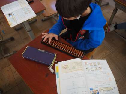 算数科で、そろばんを使って計算をしました。