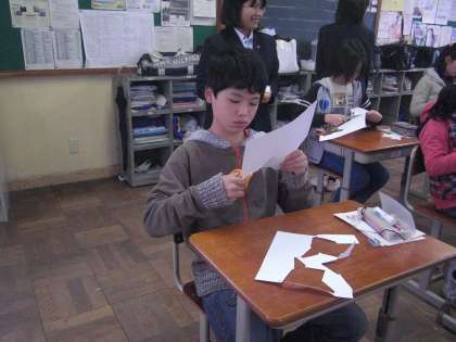 数学では,正負の数の計算をしてみました。また四角錘をつくりました。