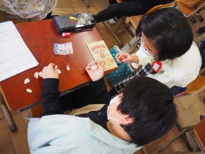 今日はお店屋さんとお客さんに分かれて、