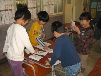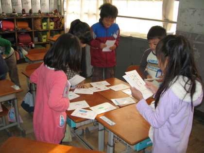 国語の授業で取り組んでいた手作りかるたがやっと完成しました。そこで,子ども達がお待ちかねのかるた大会をひらきました。とっても楽しそうにかるたをとっていました。