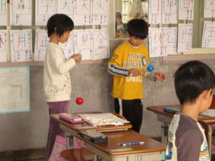 1年生の子ども達は,今日もけん玉に取り組んでいます。休みの間に練習してきた人もいます。どんどん上達していきます。