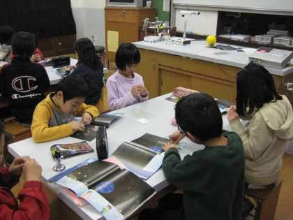 今日は,シールを貼って,夜でも簡単にオリオン座を見つけられるシート作りもしました。
