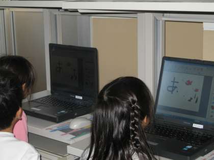 今日1年生はコンピューター室でお絵かきソフトの使い方わ学習しました。色を変えたりスタンプをおしたりカットを取り込んだりという操作もあっと言う間に覚えて上手に絵を描いていました。2月には,このソフトを使って何か作りたいと思います。