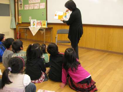 中間休みとお昼休みに,読み聞かせグループの方々が,ふれあいサロンで子どもたちに楽しい読み聞かせをしてくださいます。