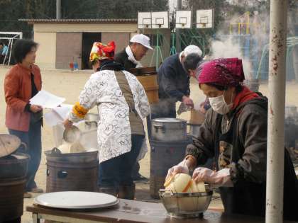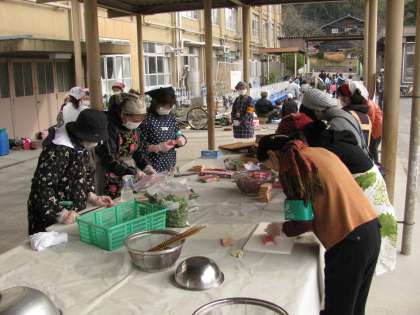 朝早くから,少年補導委員会,女性会,PTA,おやじの会の皆様方がお集まり頂き,準備にあたってくださっています。