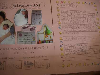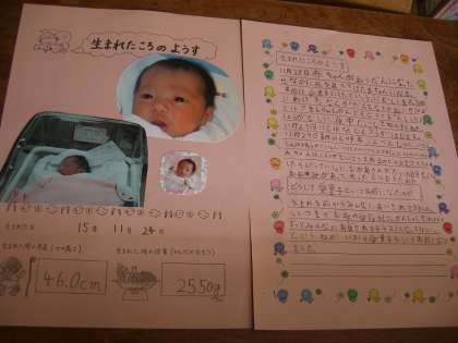 お家の方々から聞いてきた「うまれたときのようす」をアルバム用にまとめました。本当に小さかった身長や体重・生まれた時の様子を丁寧に書いていきます。