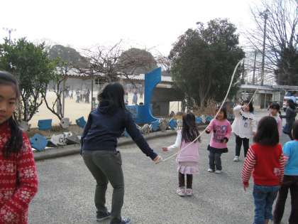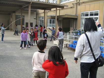 休み時間には,今大縄の練習をところ狭しとしています。1年生も高学年にまじって大縄の練習を始めました。楽しそうに跳んでいます。とても上手になってきましたね。