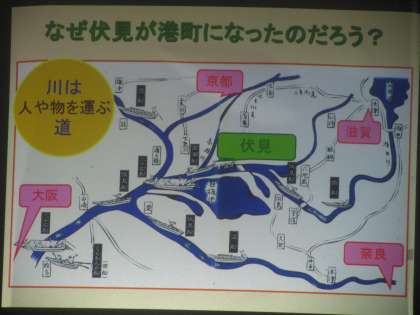 歴史の講義では昔の伏見の様子を写真を使って教えていただき