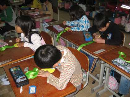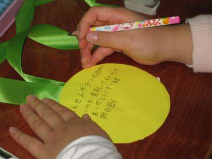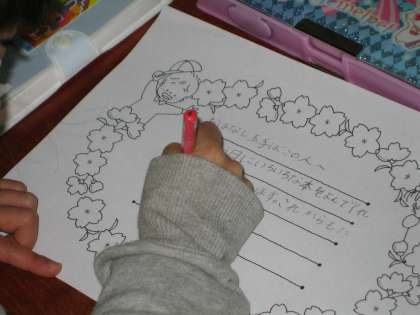 生活科の授業で,日ごろお世話になっている安全ボランティアの方やお話玉手箱の方・学校の教職員にわたすお礼の気持ちを込めた手紙やメダルを作っています。どんな文章にすればいいか考えながら,一文字ずつ丁寧に書いていました。お渡しするのが,待ち通しいです。