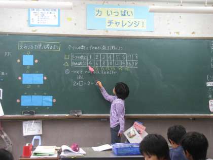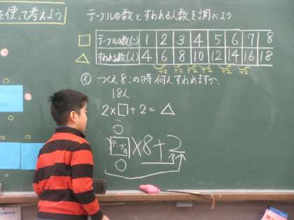 グループで話あい,全体で話あいながら,式を導きだすことができていました。