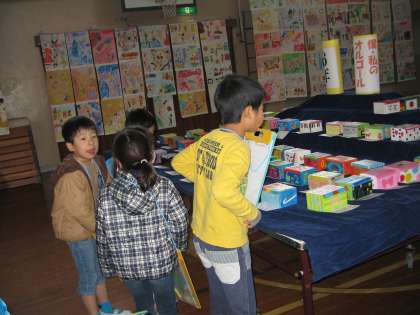1年生にとって初めての図工展。今日,鑑賞しました。色々な作品に「わあ,すてきだなあ。」「上手だなあ。」「ぼくも作りたいなあ。」とにぎやかなこと!体育館が美術館に変身です。いつもと違う雰囲気に身をおいて,じっくり鑑賞していた子ども達です。保護者の皆さまもゆっくりご鑑賞くださいね。