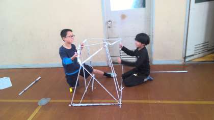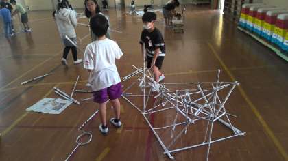 上に高くつなぐだけではなく、横に広くつなぎおもしろい形ができていました!班で協力したり、一人で集中したり、思い思いに活動できました!