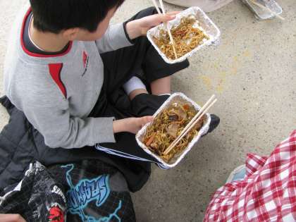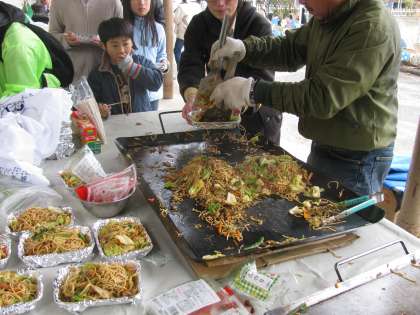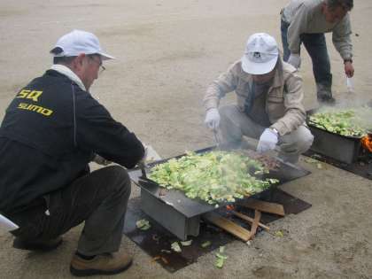 帰ってきたグループから順に,少年補導委員会特製の手作り焼きそばがふるまわれました。