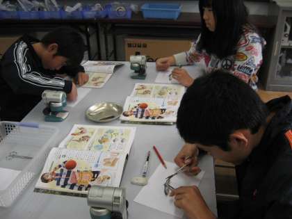ちょっとどきどきしながらも,はさみやピンセットを使って,がんばりました。