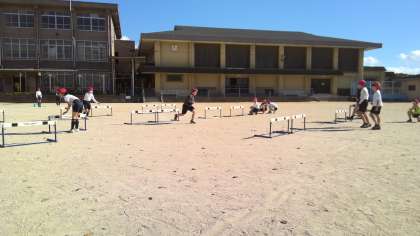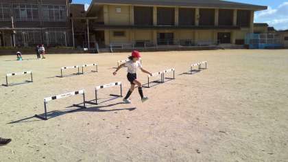 体育科の学習で『ハードル走』をしました。初めてハードルを跳ぶので最初は、