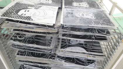 「自分の笑顔」をテーマにした版画の作品が完成に近づいてきました。